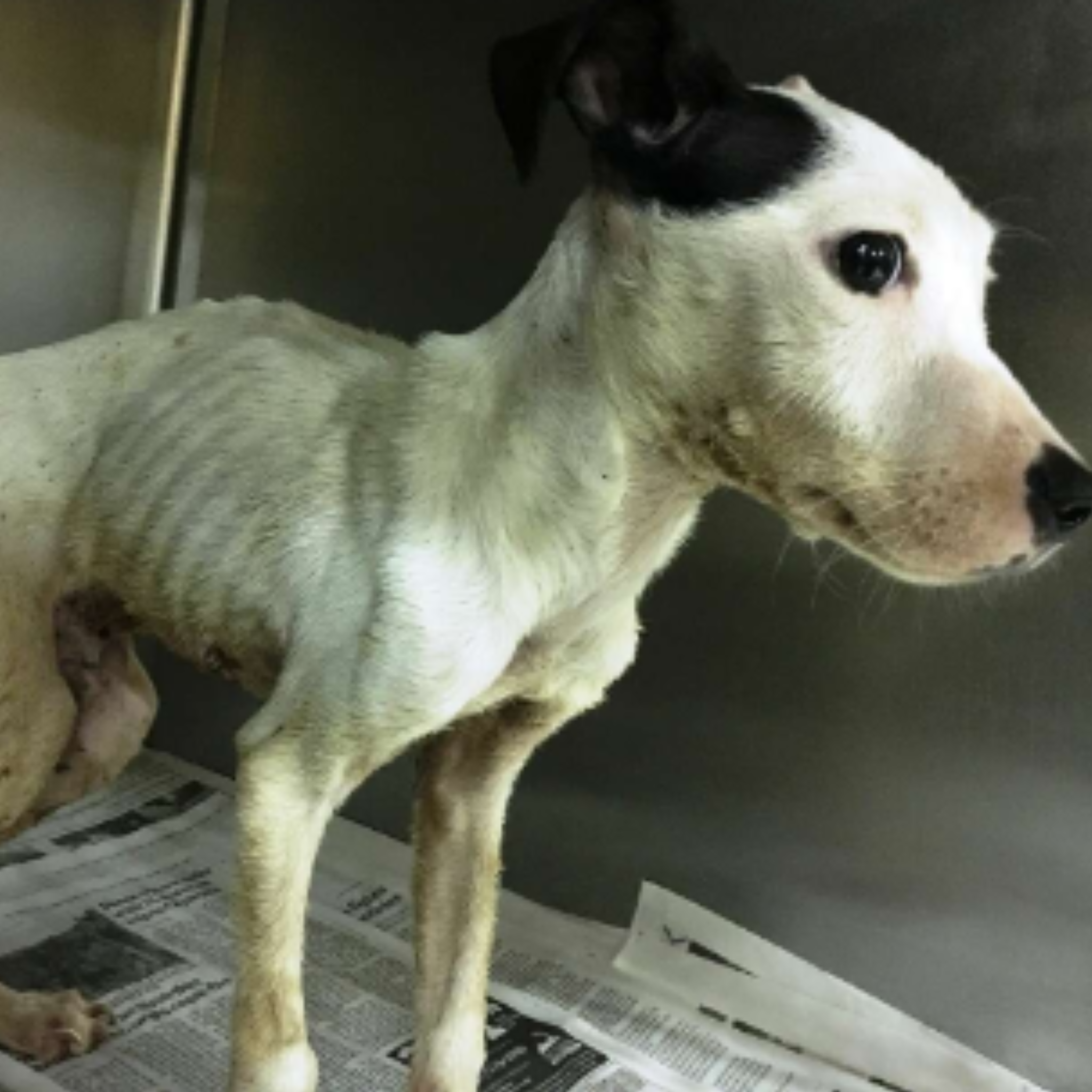 Она стояла в углу клетки, будто сама клетка стала частью её, а она — частью бесконечной серой тишины, которая разъедала пространство. Тело её было почти прозрачным: каждая кость проступала, словно чёрные метки чужой жестокости. Кожа натянутая, ребра, как неровные струны, из которых больше невозможно извлечь ни звука, ни музыки жизни. Белая шерсть казалась серой, в пятнах, и только одно ухо — чёрное, резко контрастное — будто напоминало о том, что когда-то она могла быть счастливой собакой, той самой, ради которой люди улыбаются и наклоняются, чтобы погладить. Но сейчас от этого образа осталась только тень.