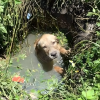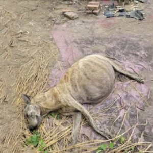 На пересохшей земле лежала исхудавшая собака, почти лишённая сил — её тонкое тело выдавало усталость от голода и долгой борьбы. Живот, заметно разбухший, говорил о том, что внутри её ещё бьются маленькие жизни; мать, истощённая и израненная, не переставала надеяться на спасение ради своих будущих щенков.