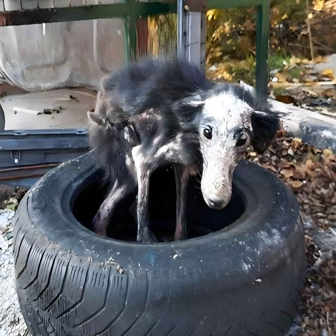 На обочине города собаку, которая пряталась внутри старой автомобильной шины, заметил неравнодушный прохожий — это стало началом её удивительного преображения.