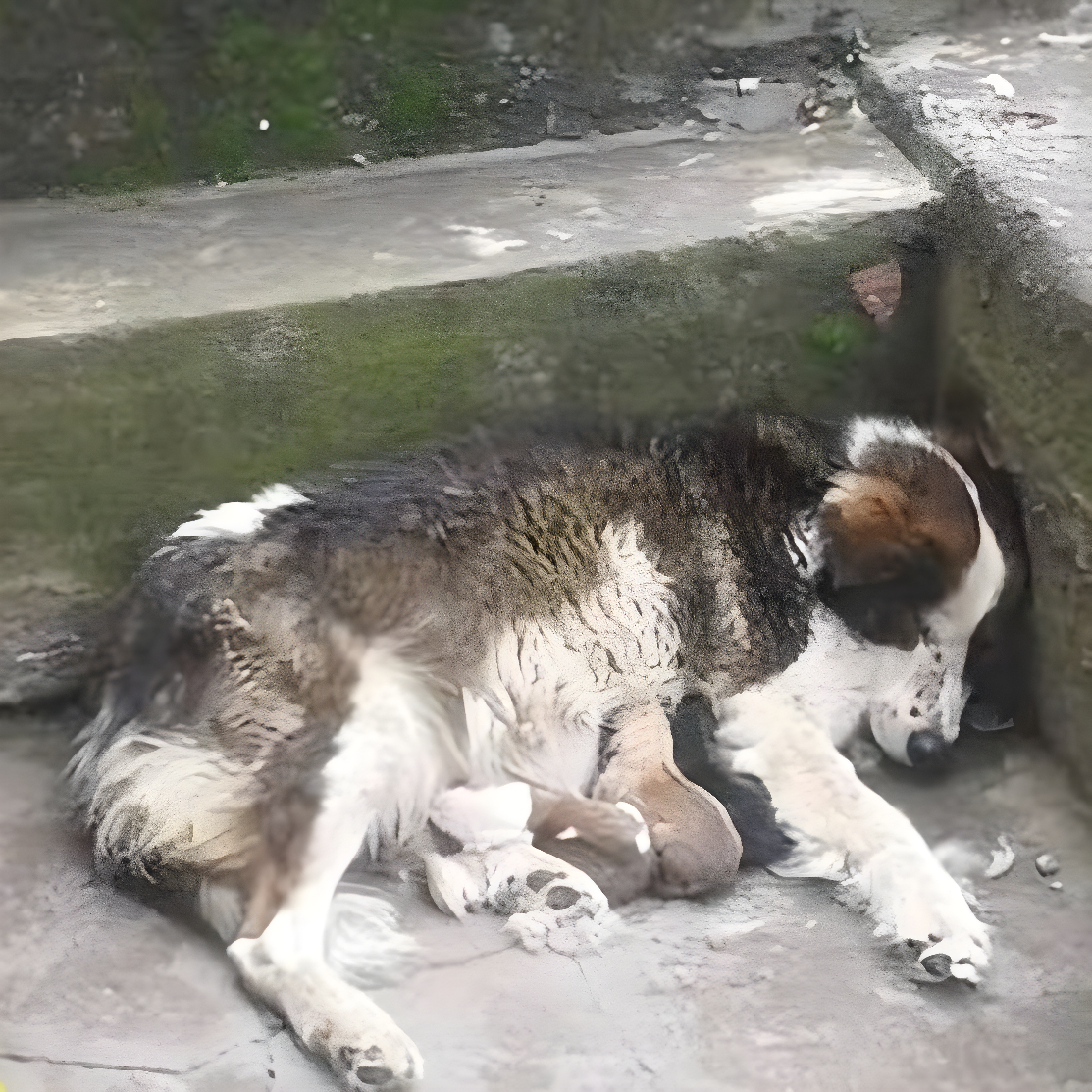 Зрелище было по-настоящему мучительным: хрупкая собака не могла подняться, но инстинкт материнства удерживал её от бездействия — она защищала щенков тем немногим, что у неё оставалось. Мороз, голод и заброшенность окружали их, и казалось, что судьба уже написала печальную развязку.