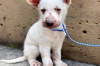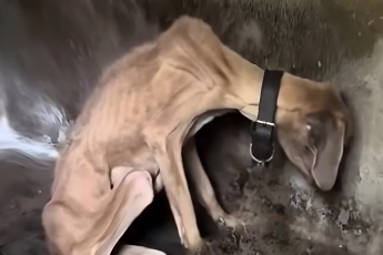 В глубине лесного массива собаку по кличке Бенто жестоко оставили привязанной к дереву — без воды, без