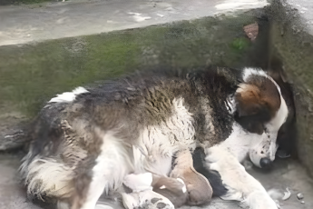Не уходи, пожалуйста: как одно сострадание спасло мать-собаку и её щенков В ледяном углу, у стены, которую