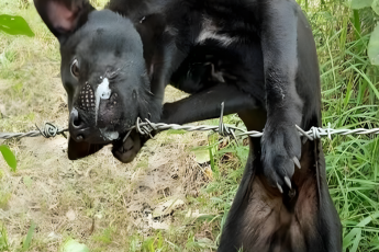 В экстренном случае был обнаружен щенок, который оказался запутан в колючей проволоке и испытывает сильную