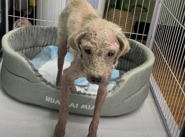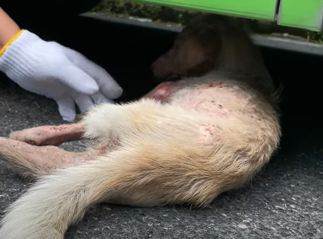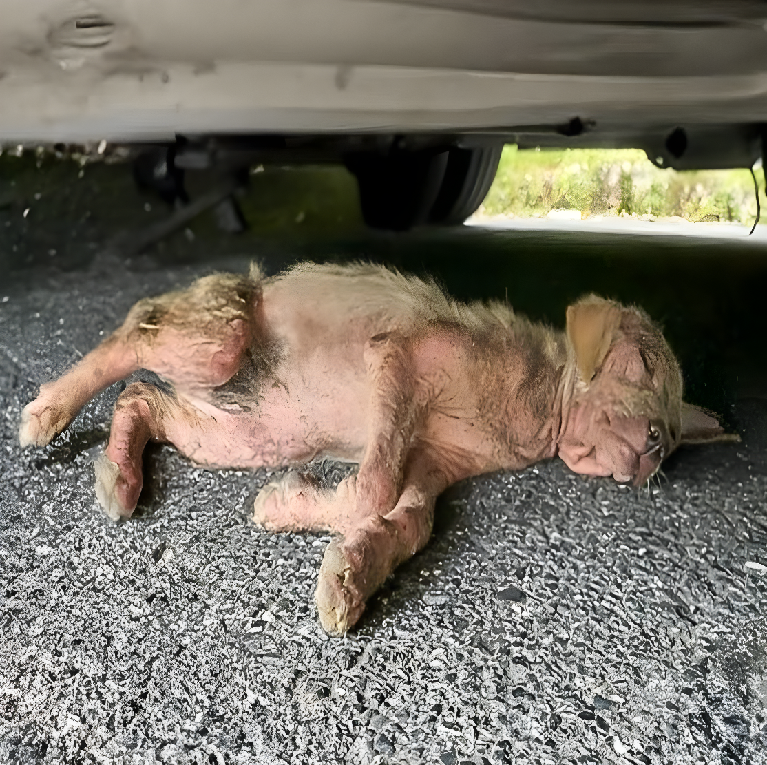 Спасатели впервые увидели эту собаку, лежащую под припаркованной машиной — её вид говорил о полном упадке сил. Тело было одутловатым, покрытым болезненными язвами, дыхание произносилось с трудом; казалось, что животное отказалось от борьбы.