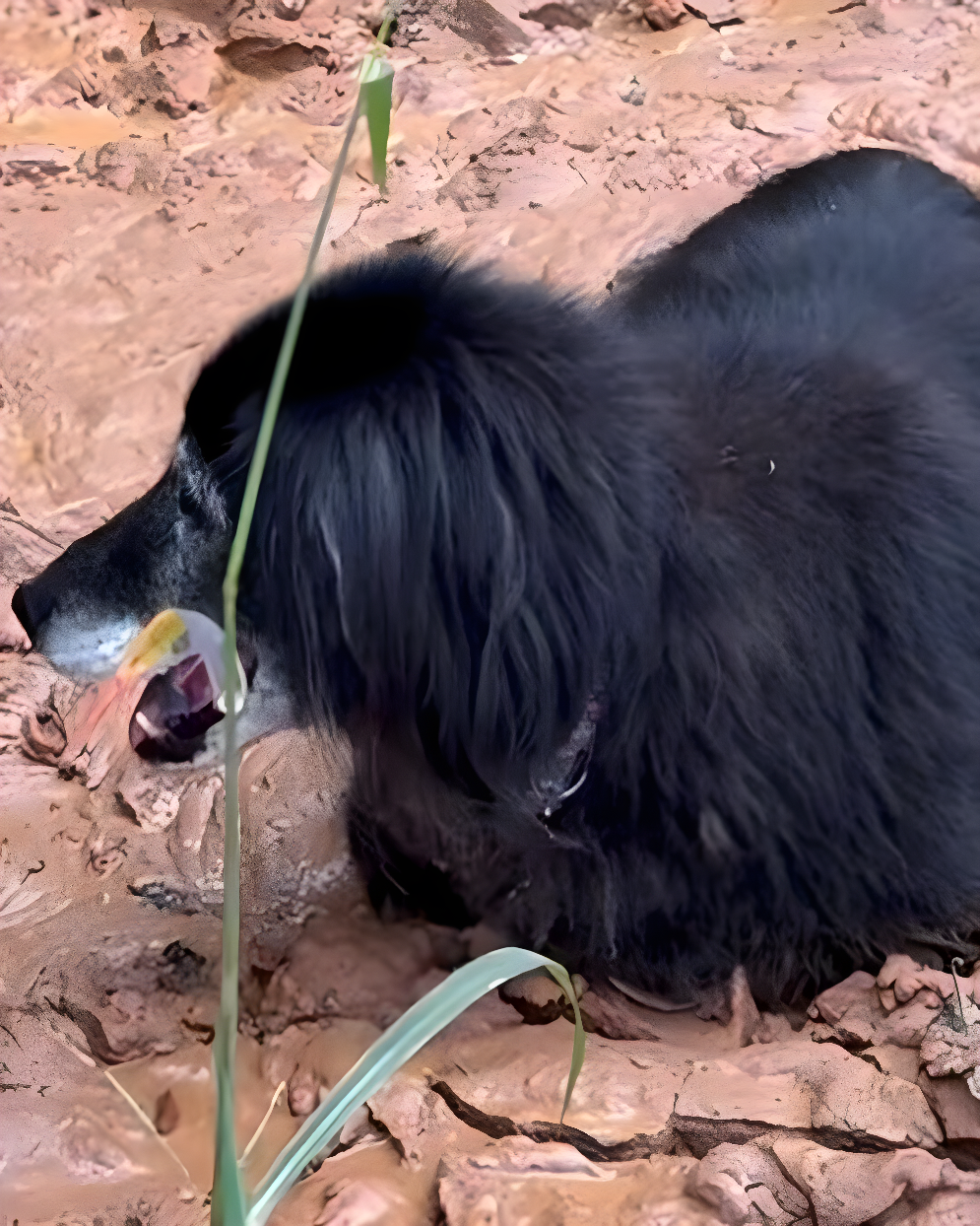 Оказалось, что Уайти — пожилой пёс, живущий на ферме с 2017 года — провалился по грудь в грязевой омут и не мог выбраться. Ситуация выглядела безнадёжной: уставший от борьбы, он едва держался на плаву и лишь изредка поднимал голову, чтобы вдохнуть воздух. Хозяйка фермы не смогла вытащить его в одиночку, и только вместе с партнёром по уходу за приютом им удалось поднять Уайти и оттащить на твёрдую почву.