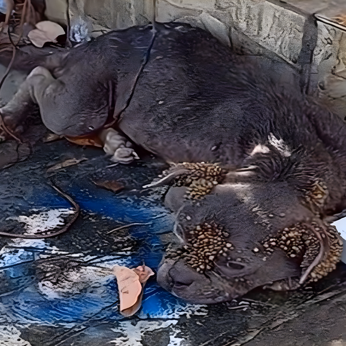 Утро застало меня в городе, который словно выдыхал усталость и сырость одновременно: холодная дорожная плитка отдавала паром, а воздух был влажным и тяжёлым. Рядом с бетонной оградой склада лежало животное — скомканное в неудобной позе, будто его прижали к земле каким-то невидимым инструментом. Шёрстка была усыпана серыми вкраплениями чужой грязи, а на шее проступала узкая, глубокая борозда от тонкой проволоки. Палящее пятно синей краски рядом выглядело как печать судьбы. Я пододвинула веник к стене, присела, свернула простыню из прачечной в мягкий валик и аккуратно подложила её под голову собаки; её дыхание стало тихим и ровным — маленькие выдохи отвечали моей тишине. Я положила руку на её грудь, и дрожь в теле постепенно стихла.