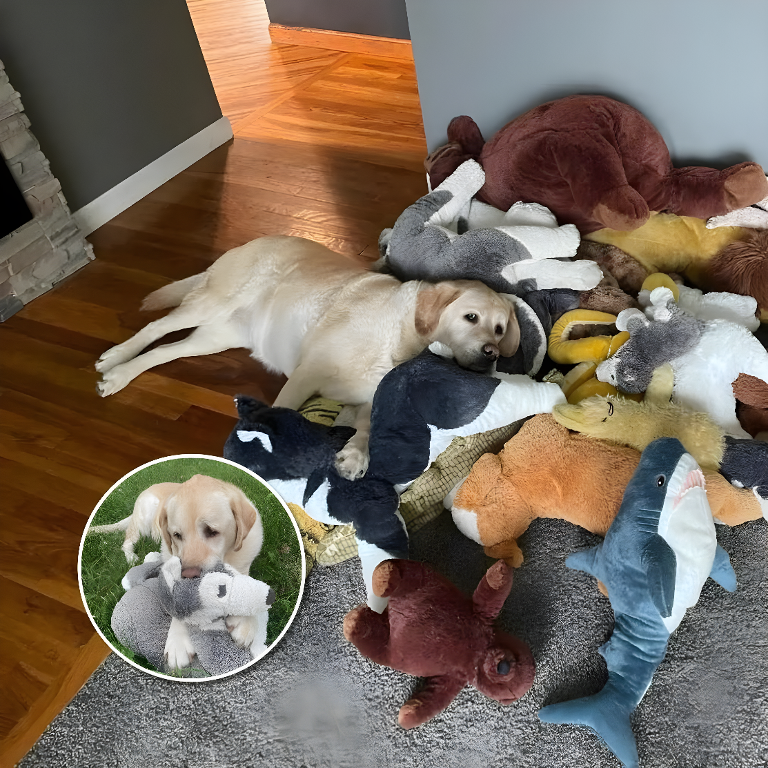 Ще один яскравий екземпляр у наборі — великий коричневий ведмідь. Через свої габарити він іноді застрягає в дверцятах для собак, що додає сцені неабиякої кумедності.