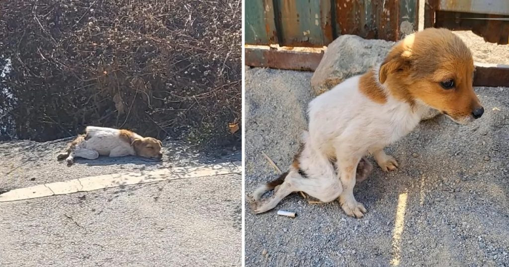 Під палючим сонцем цуценя шукало притулку під тонкою засікою — тимчасовим захистом у місці, де не було безпечного куточка. Коли волонтери прибули, картина була вкрай серйозною: вага тіла становила лише 1,8 кг, тварина була виснажена і показувала очевидні ознаки травми тазу.