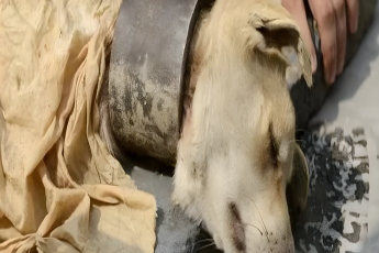 В її погляді читалася тиха, незламна печаль: лапи — обпечені, тіло — виснажене, дихання — важке. Пожежа перетворила місце на яму полум’я; вона не раз кинулася крізь жар за своїми цуценятами і не змогла їх витягти. Ті поранилися разом із надією: хутро згоріло, шкіра була оголена — біль був кожним подихом. Проте материнський інстинкт тримав її на межі — і це бажання жити стало точкою опори для порятунку.