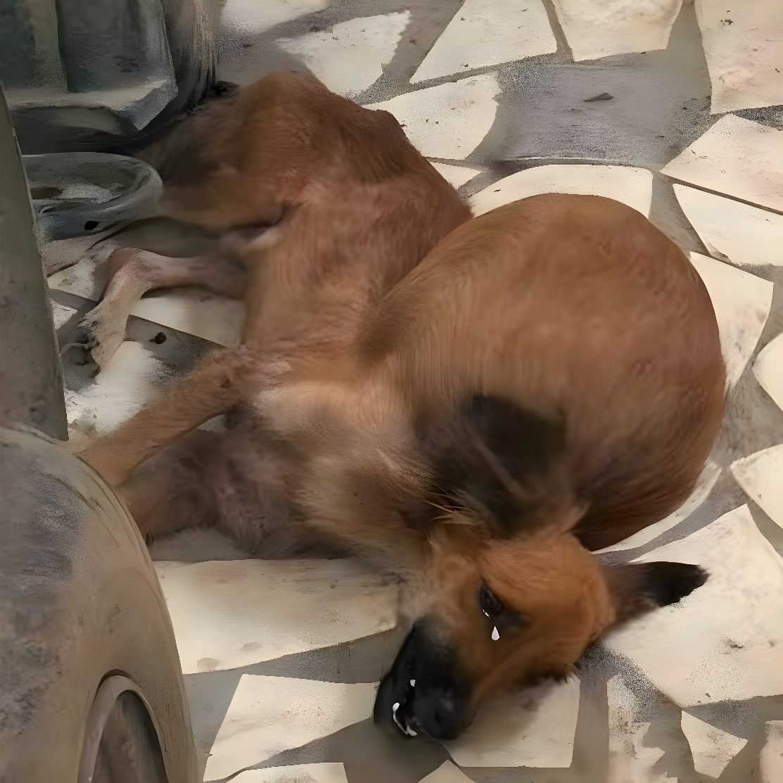 Зовнішній вигляд песика свідчив про тяжке страждання: тонка як лінія рамка тіла, поверхневий ритм дихання, загрубіле і випадаюче шерстяне покривало, уражене паразитами. Однак у погляді ще проступали залишки волі до життя — саме це спонукало до невідкладних дій.