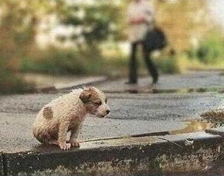 На самому краю бордюру сиділа крихітна істота — ніби вирішувала, куди їй рухатися далі: піти, впасти чи залишитися непоміченою. Маленьке цуценя було вологим, тремтіло від холоду і страху, і в його маленькому тілі не було нічого, що могло б захистити від великого світу: ні сил, ні зубів, ні тих, хто б став на його бік. Воно просто мовчки чекало.