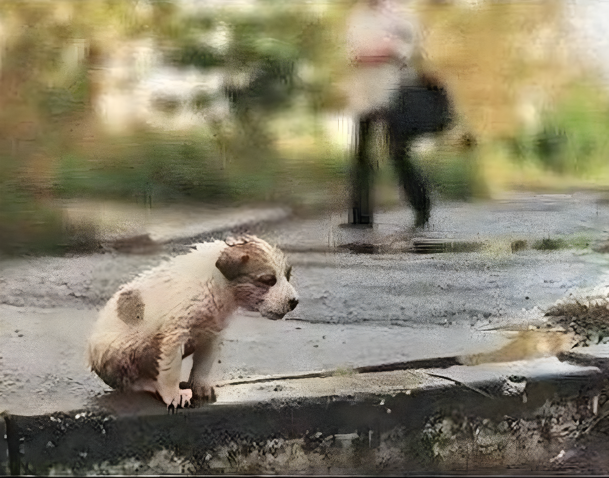 На самому краю бордюру сиділа крихітна істота — ніби вирішувала, куди їй рухатися далі: піти, впасти чи залишитися непоміченою. Маленьке цуценя було вологим, тремтіло від холоду і страху, і в його маленькому тілі не було нічого, що могло б захистити від великого світу: ні сил, ні зубів, ні тих, хто б став на його бік. Воно просто мовчки чекало.