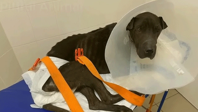 Рятівник намагався підкормити собаку, але через ослаблений стан тварина відмовлялася їсти і згорнулася в куток, наче хотіла заховатися від світу. Рішення прийняли негайно: Мау помістили в авто і доставили до ветеринарного закладу — кожна хвилина на вагу життя.