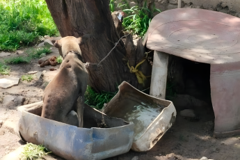 На запиленому клаптику землі лежала виснажена істота, а на шиї — іржавий фрагмент ланцюга, ніби мовчазний
