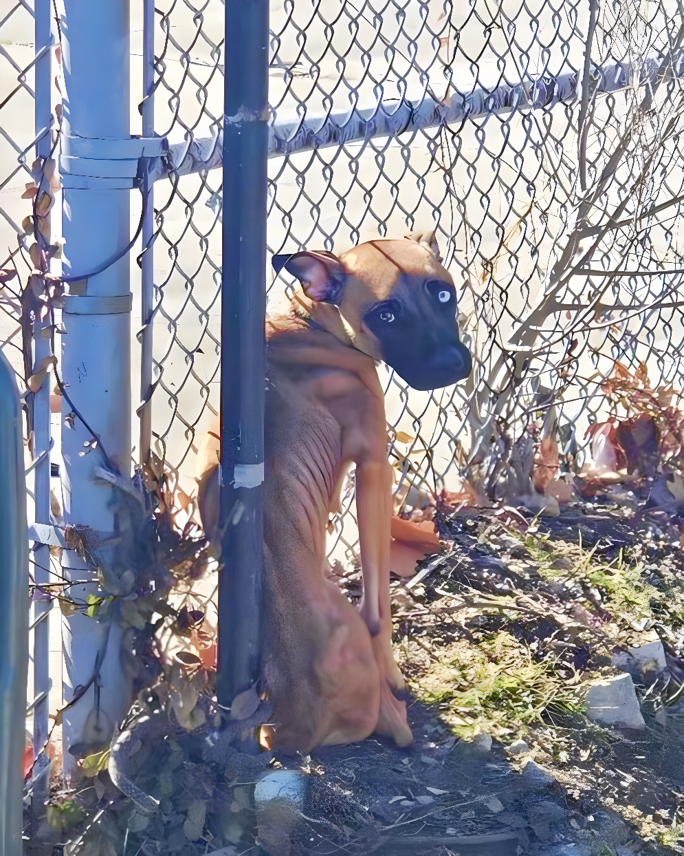 Когда сотрудники службы контроля за животными прибыли в заброшенную школу в Сент-Луисе, их встретило зрелище, от которого перехватило дыхание. Малая, хрупкая собака была пристегнута к забору, её тело было опасно худым, а движения слабыми. Было очевидно, что она находилась там довольно долго, борясь за выживание без пищи и укрытия.