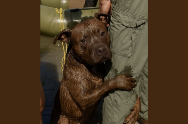 Питбуль, пропитанный и дрожащий, обнял меня своими грязными лапами как будто это было единственное безопасное место в мире!