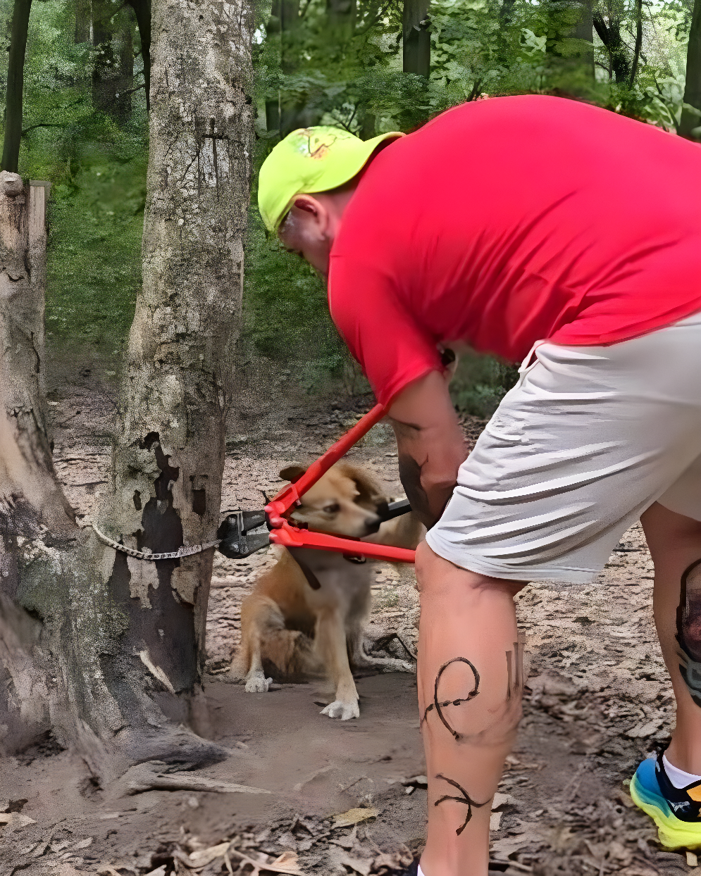 Собака, прикованная к дереву, не могла следовать за своими хозяевами