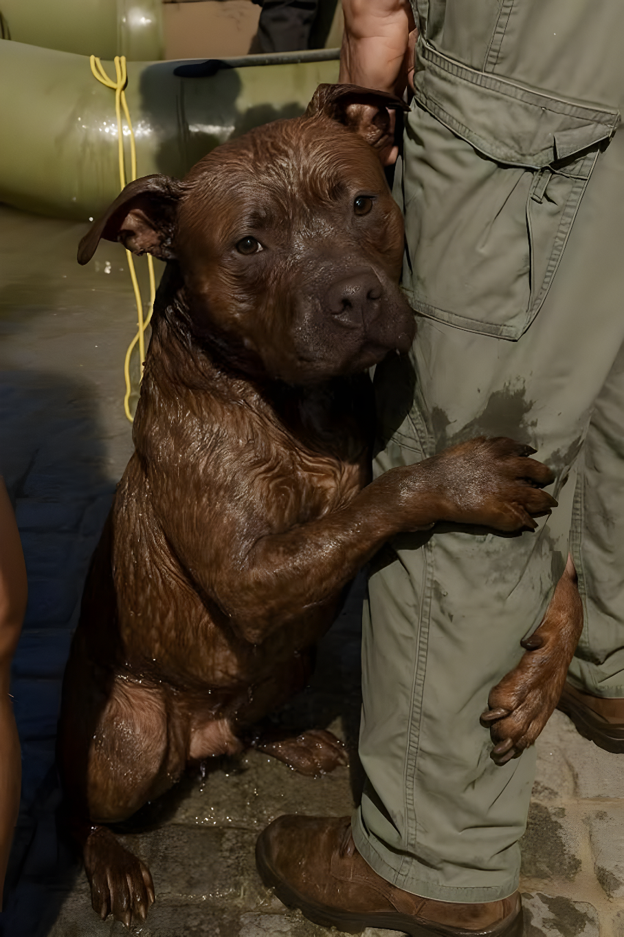 Когда мы подняли его на спасательный плот, он не отпускал меня. Даже на сухой земле его лапа не отлипала от моей ноги, как будто страх исчезнуть внезапно снова был так реален. Я шептал ему: «Ты в безопасности, приятель. Всё будет хорошо». Он был мне так нужен, как и я ему.