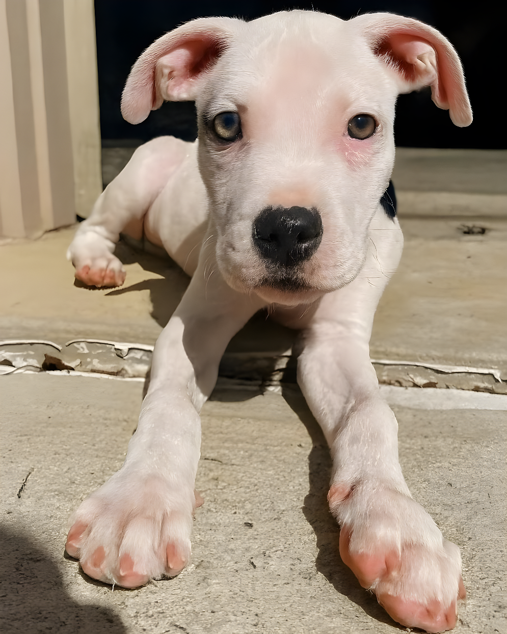 В один спокойный осенний день в Пенсильвании местный житель заметил необычное зрелище: под его дверью лежала небольшая картонная коробка, на которой небрежно было написано: «бесплатный щенок». Внутри, сжавшись в клубок, находилась белая щенок породы бульдог, примерно восьми недель от роду. Ее крошечное тельце было скрученным, словно щенок пытался спрятаться от внешнего мира.