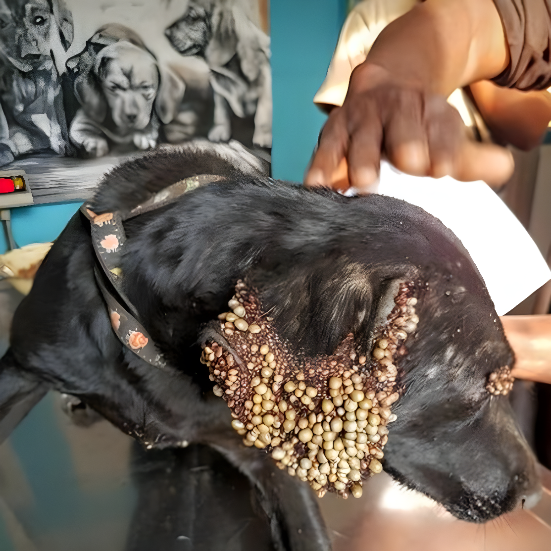 Эта серьёзная инфестация оставила Беллу почти полностью покрытой паразитами, вызывая беспокойство у тех, кто неравнодушен к благосостоянию животных. Клещи были плотно скучены вокруг ушей и век Беллы, вгоняя её в анемию, так что она едва могла заставить себя пошевелиться.