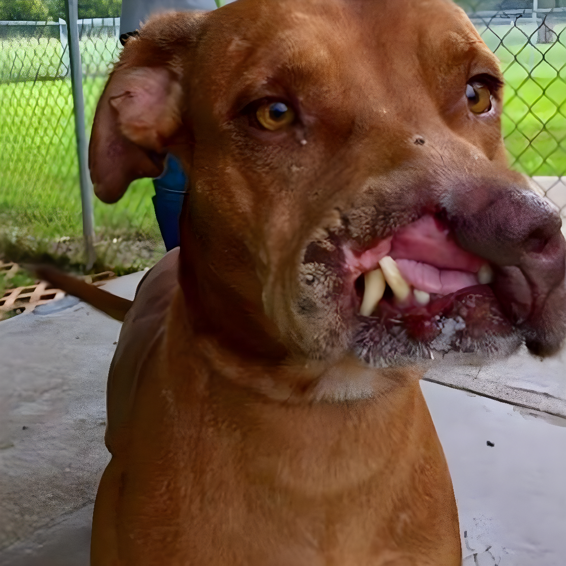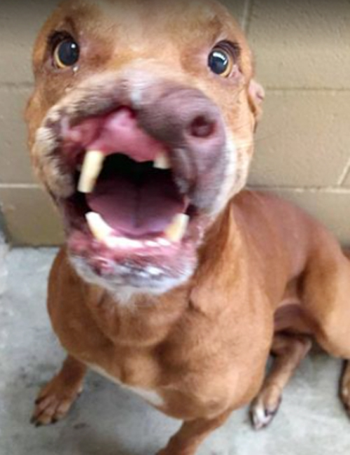 Когда Бьярни впервые нашли на улицах Хантсвилла, было очевидно, что он вел непростую жизнь. Этот [бедный] щенок страдал от трудностей с дыханием и питанием из-за своей носовой части.