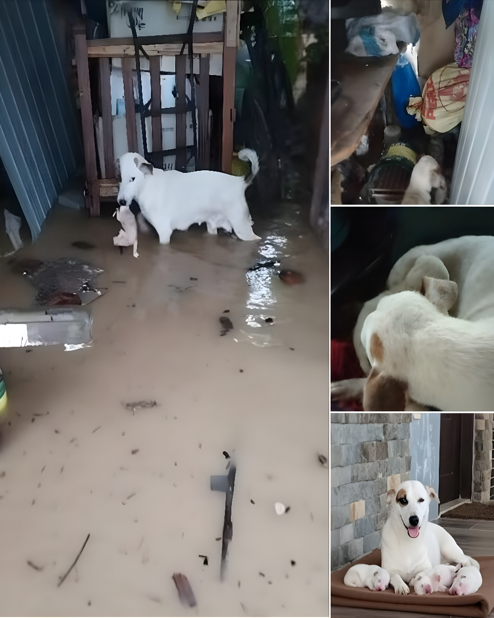 Когда шторм утих, щенки были в безопасности, а крики мамы-собаки стихли, уступив место тихому гулу ее защитного присутствия. Она выдержала бурю не благодаря укрытию или окружению, а из-за своей непоколебимой преданности своим малышам.