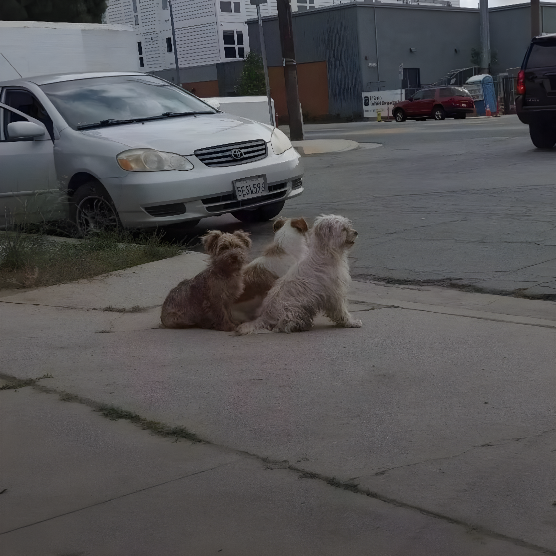 Недалеко от парка в Лос-Анджелесе три собаки уютно устроились на бетонном участке, их глаза внимательно следили за проезжающими машинами. Они не бродили и не лаяли, требуя внимания — они просто сидели, полагаясь друг на друга для утешения, в то время как молча надеялись, что кто-то вернется.