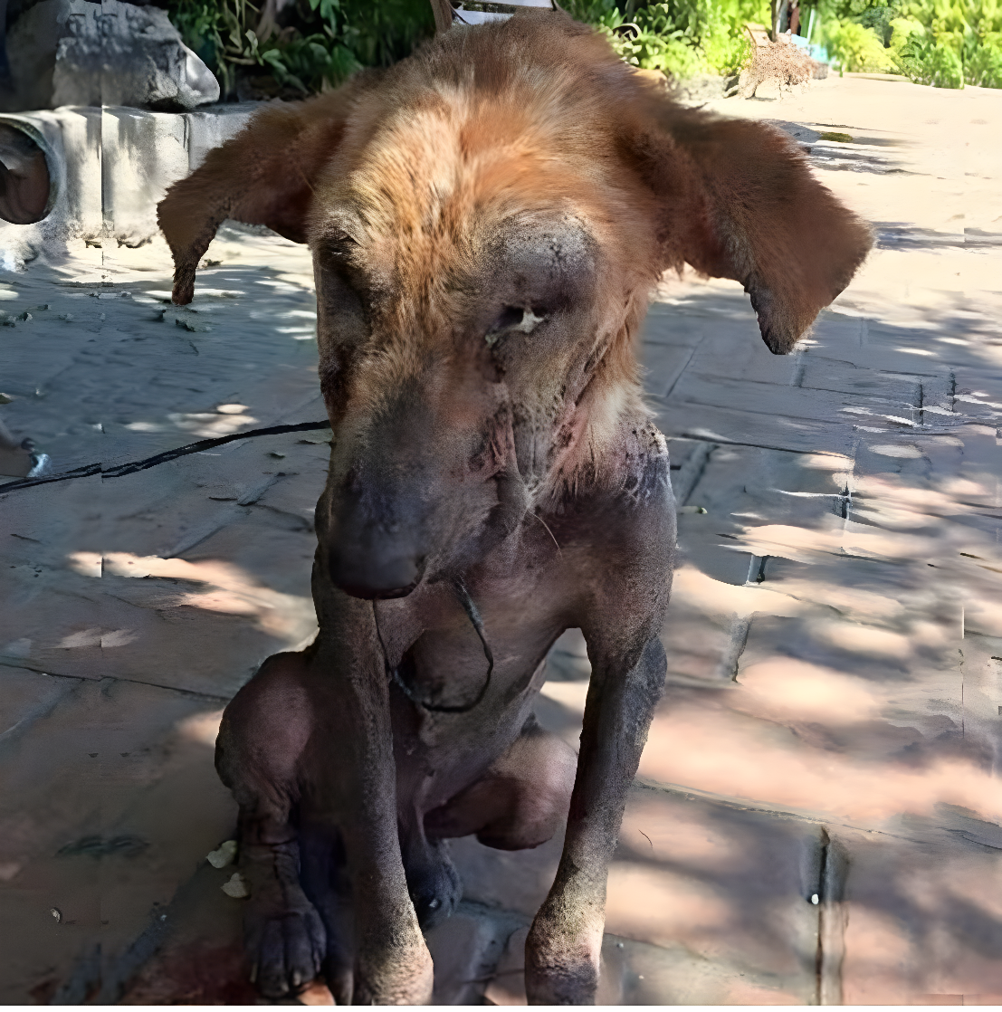 Однажды мимо проезжала женщина-волонтёр, которой необходимо было найти бездомных собак для приюта. Она остановила автомобиль. Когда она подошла ближе, её сердце сжалось: перед ней сидело воплощение страданий.