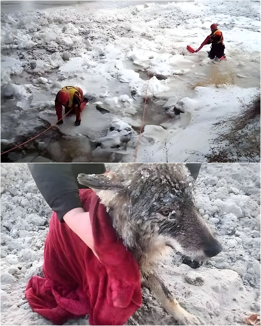 Рабочие пробили тропу через лед и вытащили дрожащего зверя на сушу, после чего доставили его в ближайшую клинику для первичной помощи. Лишь позже они узнали, что «собака», которую они забрали с собой, на самом деле была волком.