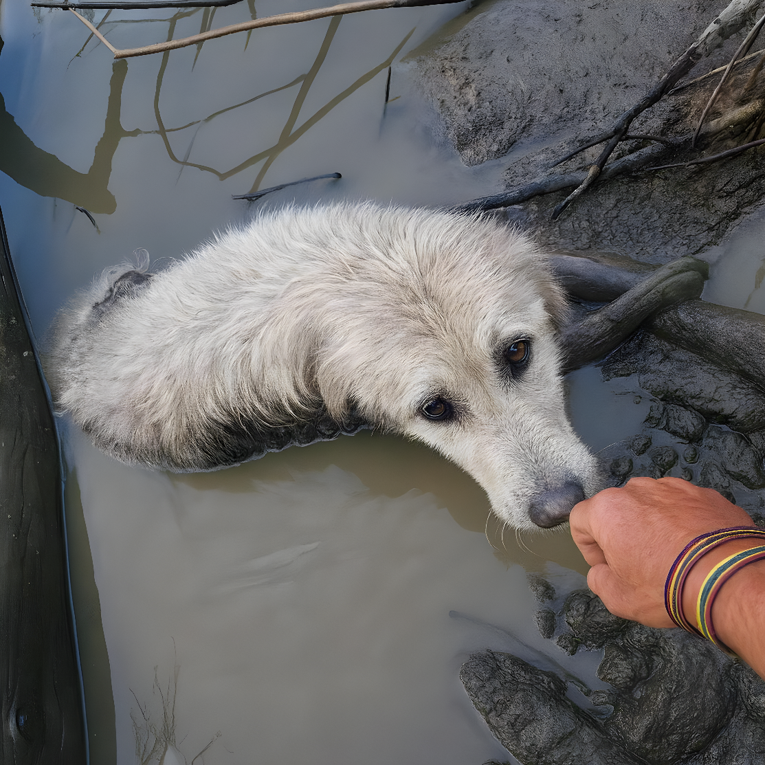 Поднять её было непросто — грязь прилипала к ней, как клей, но собака делала всё возможное, чтобы помочь stranger, пришедшему её спасти. Она слегка подталкивала передними лапами, пытаясь выразить доверие к нему. Инч за инчем, Том освободил её и вытащил из цепких лап реки.