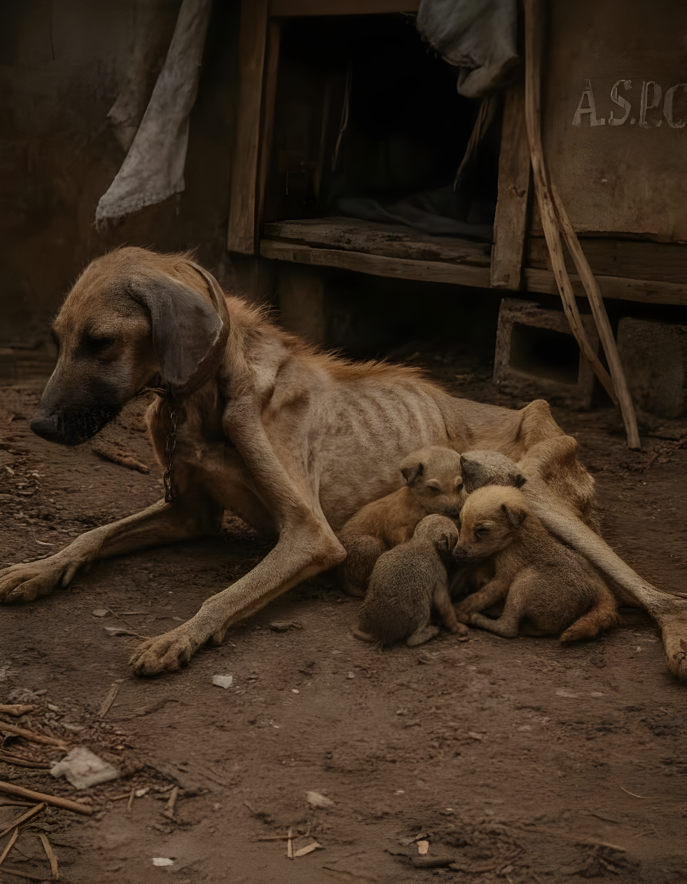 На знойной окраине провинции Лимон в Коста-Рике, заброшенная собака, впоследствии названная Эсперанцей, лежала прикованной к ржавой металлической трубе у разваливающегося деревянного хижины. Её ребра выпирали, как решётка клетки, а тазовые кости могли бы отбрасывать тени. Серый, секущийся мех цеплялся за её истощённое тело, а между её лапами слабые новорожденные щенки—едва достигшие недели—искали молоко, которое давно высохло. Ни один прохожий не ожидал, что эта умирающая мать, слишком слабая, чтобы встать, использует свои последние часы, чтобы совершить такой решительный и отчаянный поступок, что даже опытные спасатели не могли сдержать слезы, а вся Коста-Рика оказалась потрясена этим событием.