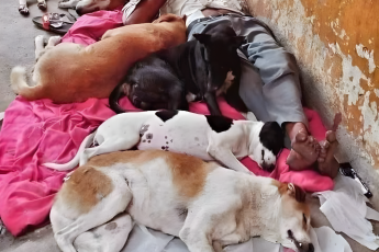 На груди у него уютно устроились его собаки, дыша так тихо, что их дыхание можно было бы спутать с шепотом
