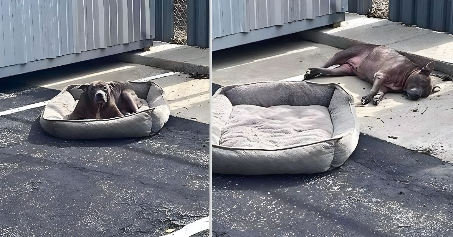 Эта замечательная собака была оставлена одна с единственной своей лежанкой, защищавшей ее от раскаленного асфальта. Каково же было удивление волонтеров, когда они прибыли на место и увидели её.