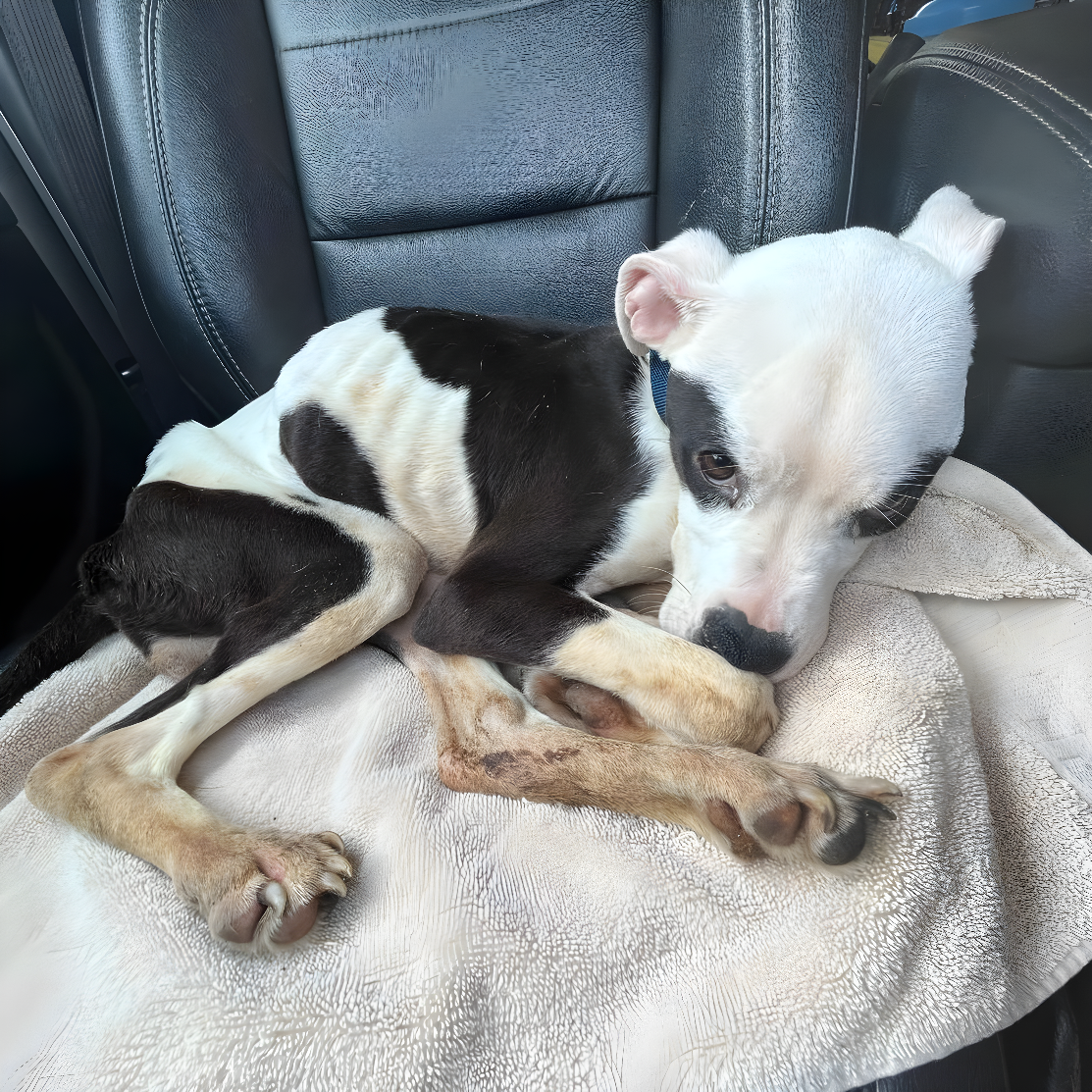 Когда команда спасателей прибыла, Донна Лохман, главный спасатель, была поражена. То, что она увидела, разбило ей сердце. Щенок был не просто худым, он был истощённым, слишком слабым, чтобы даже встать. Лежа на одеяле на улице, щенок слегка вовалил хвост, как будто хотел сказать спасибо.