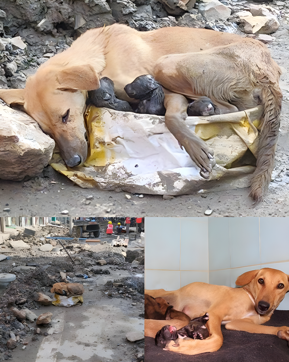 На шумном строительном объекте в Индии, среди груды мусора и пыли, жизнь и отчаяние соединились в одном трогательном моменте. Там, среди обломков, лежала мать-собака, безжизненно раскинувшая лапы, слишком слабая, чтобы встать. Ее иссохшее тело тряслось от изнеможения, но даже в страданиях у нее осталась одна инстинктивная сила, сильнее боли — любовь. С последней силой она обняла своих новорожденных щенков, стараясь защитить их от жестокого мира, который уже так много отнял у нее.