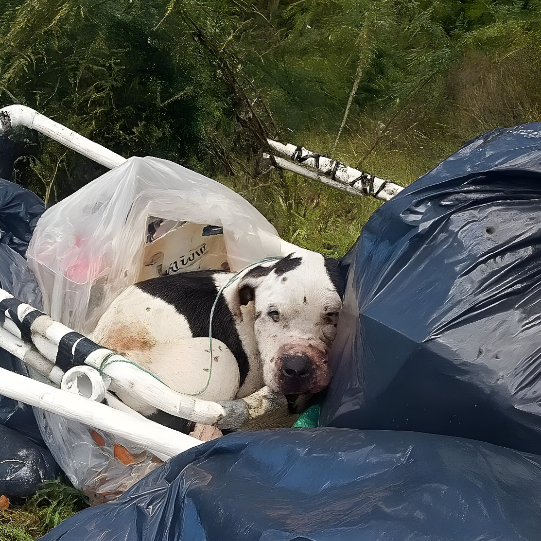 W cichym poranku, za rzędem budynków wąska alejka wydawała się opustoszała, słyszalny był jedynie szum pobliskiego kontenera na śmieci. Wśród porzuconych kartonów i rozrzuconych worków na śmieci, młody pit bull czekał w milczeniu. Jego ciało było nieruchome, lecz oczy zdradzały całą historię bólu i dezorientacji. Jego twarz była silnie spuchnięta, a siniaki mówiły o przemocy, jakiej żadne zwierzę nie powinno cierpieć. Głód przygryzał jego brzuch, ale gorsze było uczucie całkowitej samotności.