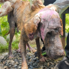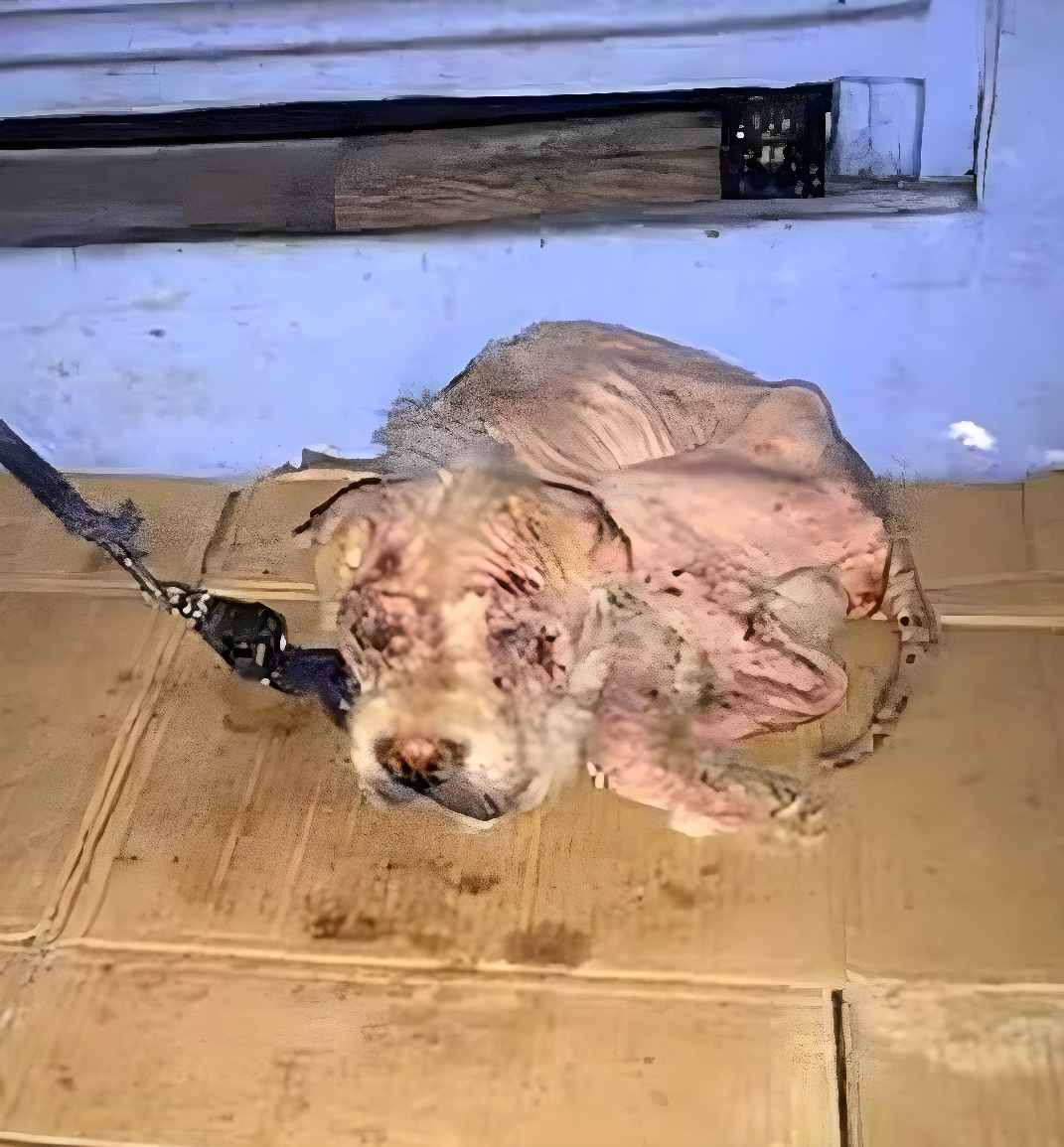 Kiedy Potchie został w końcu odkryty, jego stan wstrząsnął nawet tymi, którzy mieli do czynienia z cierpieniem na co dzień. Jego skóra była zapalona i podrażniona, pokryta małymi kropeczkami, które sugerowały infekcję. Jego sierść wypadła w plackach, odsłaniając delikatną, różową skórę. Opuchlizna wokół jego oczu była tak znaczna, że zniekształcała jego wyraz twarzy, maskując niegdyś jasny, ciekawy wzrok, który powinien mieć każdy pies. A poza widocznymi ranami, jego postawa i niepewne ruchy ujawniały coś jeszcze bardziej bolesnego – jego nadzieja zgasła.