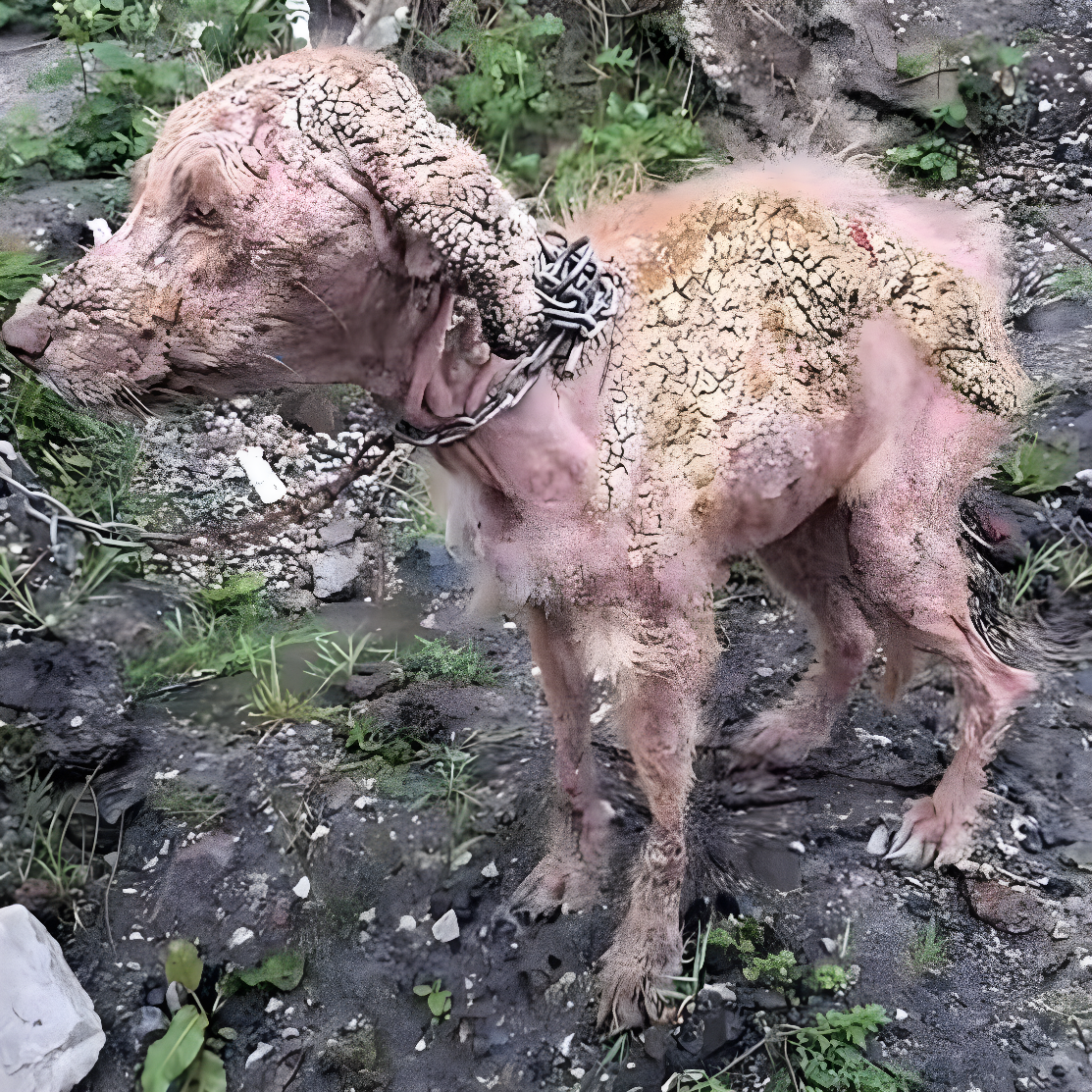 В ясный день на запыленной дороге, среди камней и грязи, обессиленный собака без милости лежал на солнце. Его кожа, покинувшая его тело, была прослойкой слоем, будто омертвевший, и каждая попытка сдвинуться вызывала муки, из которых кровь лилась градом. Разрушенная цепь, ржавеющая на его шее, впивалась в плоть с такой силой, что разрывала кожу, открывая кровавую мясистую поверхность. Каждый его вздох оставлял тихий, подавленный стон, полный боли и сожаления.