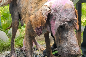 Никто не мог сдержать слез, наблюдая за ужасным состоянием беззащитной собаки, лежащей в холодной грязи