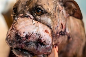 Історія нещасного собаки запалює серця всіх, хто її чує. Його обличчя спотворене болючими ранами, а життя