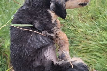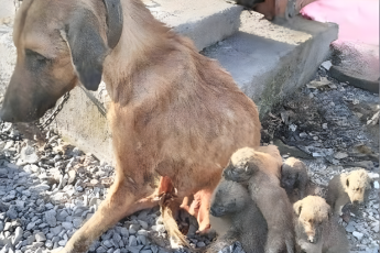 В парке Сан-Антонио, штат Техас, была найдена собака с щенками, свернувшимися на мокром одеяле.