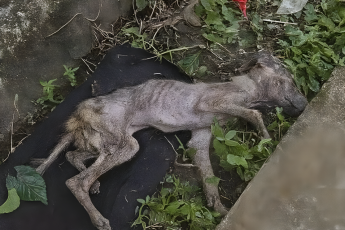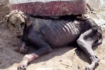 На узбіччі, серед пакунків і каміння, лежав пес — немов непотрібний уламок побуту. Його тіло вкрай виснажене