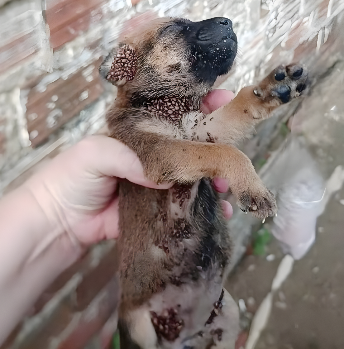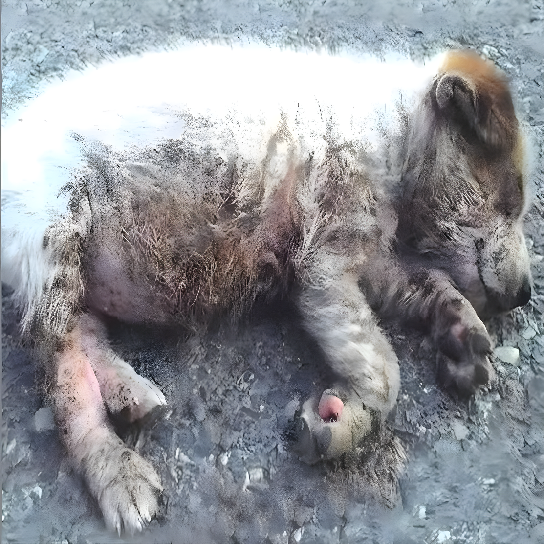 На суровом холодном асфальте города лежал крошечный комок грязи — символ безнадежности и брошенности.