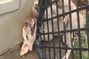 Невероятно трогательная сцена: мелкого щенка обнаружили зажатым под холодными металлическими прутьями.
