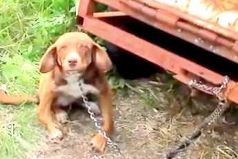 Десятимесячного пса по кличке Дюк оставили прикованным к ржавому грузовику и фактически обрекли на гибель.